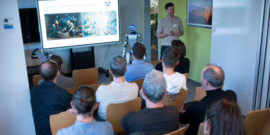 Stampfend trat er an unserem Kundenanlass Mitte November an unserem Standort in Bern in den Präsentationsraum. Unser Plix - 130 Zentimeter gross, rund 40 Kilo schwer, ein humanoider Roboter - war natürlich der Star des Events. Unsere Gäste erfuhren, wie Plix lernt und wie komplex dies ist – und sie erhielten einen Eindruck davon, wie HBT die KI-Welt auf ihre Arbeitsfelder täglich umbricht.