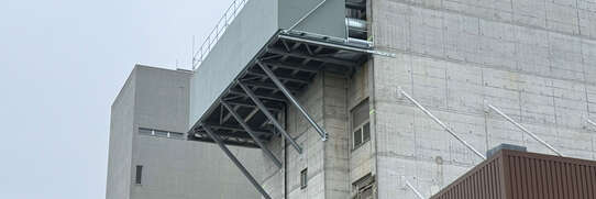 Für die Getreidecenter Freiamt AG in Wohlen durften wir eine technisch anspruchsvolle Speziallösung planen und realisieren... Ein Stahlpodest, befestigt in rund zwölf Metern Höhe direkt an den Betonwänden eines bestehenden Getreidesilos, trägt heute einen rund 24 Tonnen schweren Luftwäscher!