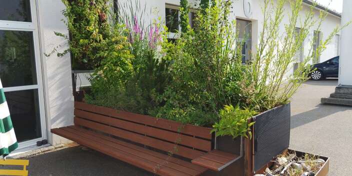 • Die Aufenthaltsqualität wird durch das kräftige Naturelement gesteigert, die Biodiversität vor Ort wird erhöht.