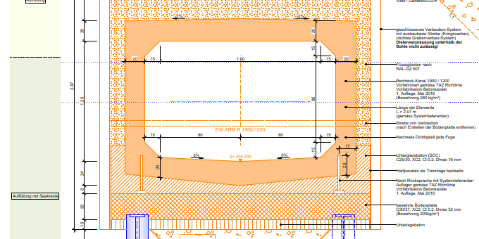Der Baugrund im Arboretum ist stark setzungsempfindlich. Deswegen sind HBT und die Bauherrschaft auf die Idee gekommen, Flüssigboden für die Grabenauffüllung einzusetzen, um die Erschütterungen so gering als möglich zu halten …und der Variantenvergleich anhand der Ökobilanzierung zeigt deutlich auf, dass mit der Variante Flüssigboden ca. 30% Umweltbelastungspunkte und rund 13% an kg CO2-eq. eingespart werden können. Mit der Variante Flüssigboden wird weniger Menge an Material (Untergiessbeton), weniger Menge an Aushub deponiert, sowie sind auch weniger Transportwege für den Aushub und Betonlieferung zur Baustelle nötig.