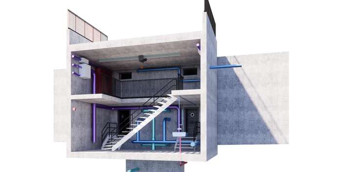Beim Ersatzneubau des Reservoirs Harnischbogen in Schleitheim wurde für die Planung ein virtuelles Modell erstellt, das nach und nach mit den für die Baubewilligung nötigen Informationen angereichert werden konnte. Zur Baueingabe wurde das Modell der Bauverwaltung mittels Online-Viewer zur Verfügung gestellt. Dadurch hatten die Gemeinde- und Kantonsbehörden die Möglichkeit, von den Vorteilen einer 3D-basierten Planung zu profitieren (rasches Erfassen der räumlichen Situation, Ein- bzw. Ausblenden einzelner Elemente, Erzeugung eigener Schnitte, direktes Messen im Modell etc.).