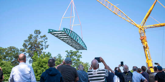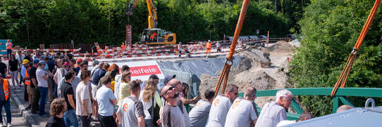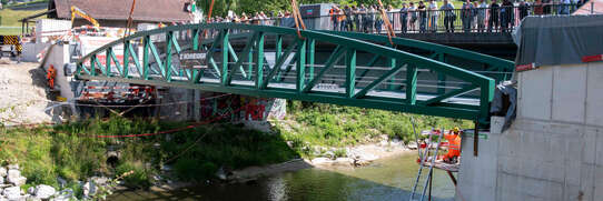Am Donnerstag, 12. Juni 2025 konnte ein wichtiger Meilenstein mit dem Brückeneinhub bei dem Projekt Zulaufkanal Wülflingen in Winterthur erreicht werden. Die rund 42 Tonnen schwere und 35 Meter lange Stahlbrücke wurde bei perfektem Wetter und bester Stimmung im Projektteam und den zahlreichen Zuschauern an ihren Standort über der Töss versetzt – mithilfe eines der grössten Pneukrane der Schweiz. In Kürze wird die Stahlkonstruktion das gesamte Abwasser der Stadt Winterthur über zwei Stahlrohre mit einem Durchmesser von 1400 mm zur ARA Hard leiten. Als Projektverantwortliche bedanken wir uns bei allen Beteiligten für die hervorragende Zusammenarbeit!