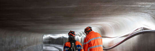 Zusätzlich werden neue Einstiege im Gleisbereich erstellt, was eine enge Zusammenarbeit mit der SBB erfordert. Die Sanierung startete anfangs Jahr 2025 und dauert rund zwei Jahre. Um die Kanäle trockenzulegen, wird das Abwasser durch den jeweils parallel verlaufenden Abwasserkanal umgeleitet. Ein im Kanal eingebautes Abschottungs- und Alarmierungssystem ermöglicht die Arbeiten in jeweils einem Kanalstrang bei trockener Witterung. Aufgrund der auch bei Trockenwetter sehr hohen Abwasserstände wird der Kanal bereits bei kleinen Regenereignissen geflutet. Aktuell sind die Sanierungsarbeiten im linken, rechteckigen Kanalstrang (4.0 x 2.1 m) im Gange. Das schadhafte Betongefüge wir mittels Wasserhöchstdruck abgetragen und mit einem abwasserbeständigen Sanierungsmörtel reprofiliert. Einige Kanalabschnitte werden mittels Zulage von Bewehrung statisch verstärkt. Die Sanierungsmassnahmen verlängern die Nutzungsdauer der Kanäle um rund 50 Jahre.