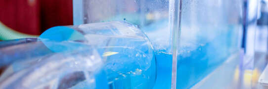 Das aus transparentem Acrylglas gebaute Modell ermöglicht es, das komplexe Strömungsverhalten im Bauwerk direkt zu beobachten. Im Zusammenspiel mit CFD-Simulationen (Computational Fluid Dynamics) wurde so überprüft, ob sich die geplante Konstruktion unter realitätsnahen Bedingungen wie berechnet verhält. Das Ziel: Qualitätssicherung und Optimierung des hydraulischen Designs.