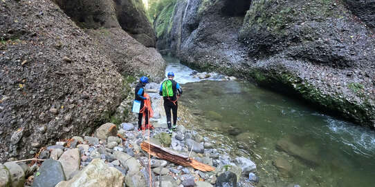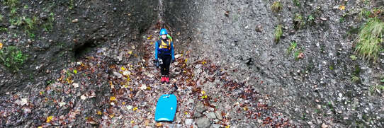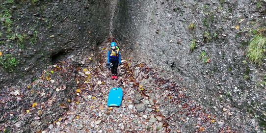 Bei einem ersten Erkundungsdurchgang installierten wir in einem rund 800 Meter langen Schluchtabschnitt Sicherungsseile und klärten die Möglichkeiten für Flug- und Filmaufnahmen. Beim zweiten Durchgang entstand dann das eigentliche Bildmaterial. Eine Person präparierte und signalisierte die Zwischenlandeplätze, die andere steuerte die Drohne. Die Aufnahmen in dieser wunderschönen, aber auch anspruchsvollen Schlucht waren ein Wechselbad der Gefühle.