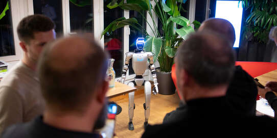 Stampfend trat er an unserem Kundenanlass Mitte November an unserem Standort in Bern in den Präsentationsraum. Unser Plix - 130 Zentimeter gross, rund 40 Kilo schwer, ein humanoider Roboter - war natürlich der Star des Events. Unsere Gäste erfuhren, wie Plix lernt und wie komplex dies ist – und sie erhielten einen Eindruck davon, wie HBT die KI-Welt auf ihre Arbeitsfelder täglich umbricht.
