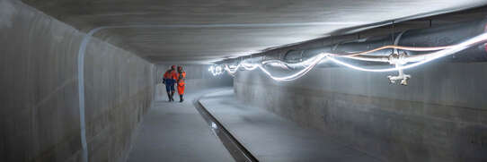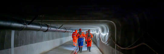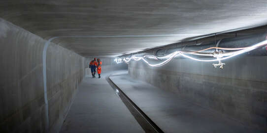 Unter dem Gleisfeld bei der Duttweilerbrücke in Zürich werden zwei Mischabwasserkanäle saniert. Die beiden parallel verlaufenden Kanäle unterqueren den rund 280 Meter breiten Gleisbereich und leiten das Abwasser aus den Kreisen 2, 3, 4 und 9 in Richtung der Kläranlage Werdhölzli. Im Auftrag von ERZ Entsorgung + Recycling planen, koordinieren und begleiten wir die Sanierung der insgesamt über einen Kilometer langen Kanalstrecke. Nun ist der erste der beiden Mischabwasserkanäle erfolgreich saniert und bereits in Betrieb genommen. Ein einzigartiger Einblick: