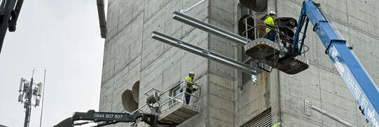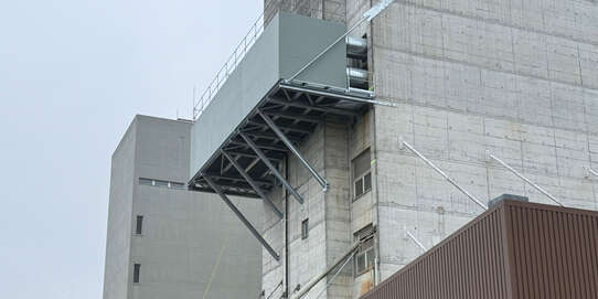 Für die Getreidecenter Freiamt AG in Wohlen durften wir eine technisch anspruchsvolle Speziallösung planen und realisieren... Ein Stahlpodest, befestigt in rund zwölf Metern Höhe direkt an den Betonwänden eines bestehenden Getreidesilos, trägt heute einen rund 24 Tonnen schweren Luftwäscher!