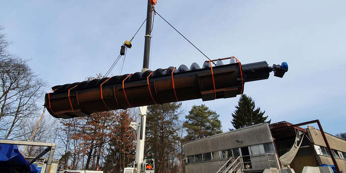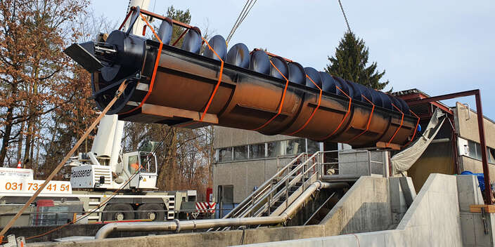 Auch die Betriebsleute der Kläranlage haben fleissig mitgewirkt. Sie haben diverse Vorbereitungsarbeiten geleistet und Steuerung, Elektronik und viele andere Einzelheiten selber organisiert und eingebaut. «Eine wirklich spezielle und coole Art der Zusammenarbeit, welche wir in diesem Projekt mit dem ARA-Team erleben durften! Auch der Transport und die flinke Montage der grossen Schnecke durch das eingespielte Team der Firma Häny war sehr beeindruckend», erklärt unser Projektleiter vor Ort und Fotograf der spektakulären Bilder, Frederic Rüfenacht.