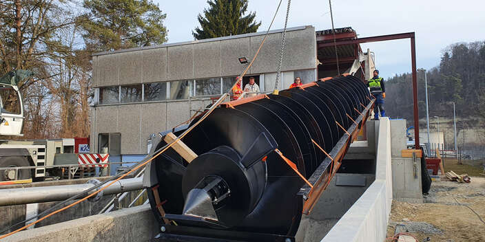 Die Schnecke erhöht die Betriebssicherheit und wird zukünftig die zwei bestehenden Aggregate bei deren Arbeit ergänzen. Die Planung und der Einbau waren "nicht ohne". So sind die Platzverhältnisse eng und es musste eine stimmige hydraulische Problemlösung erarbeitet werden. Hunziker Betatech ist der Gesamtplaner dieses Projekts.