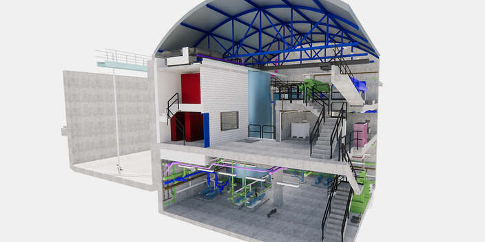Die Abwasserreinigungsanlage Laufäcker in Turgi bekommt für 3.7 Millionen Franken eine neue Schlammentwässerungsanlage. Der Spatenstich ist erfolgt. Wir haben die Anlage mittels eines digitalen Gebäudemodells und Anlageschema erarbeitet. Und führen das Bauvorhaben als Projektleitende durch.